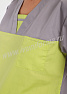 Костюм женский универсальный состоит из куртки и брюк. Куртка прямого силуэта средней длины, в нижней части полочки расположены боковые вместительные карманы, в верхней части имеется удобный нагрудный карман. Полочка с отрезными кокетками, с V-образным вырезом горловины, декорирована эффектной вставкой. Спинка прямая, рукава короткие, втачные. Брюки – джоггеры на резинке создают динамичный образ современного специалиста. Костюм выполнен из легкой смесовой ткани, прост в уходе, предназначен для медицинских работников и персонала СПА салонов.